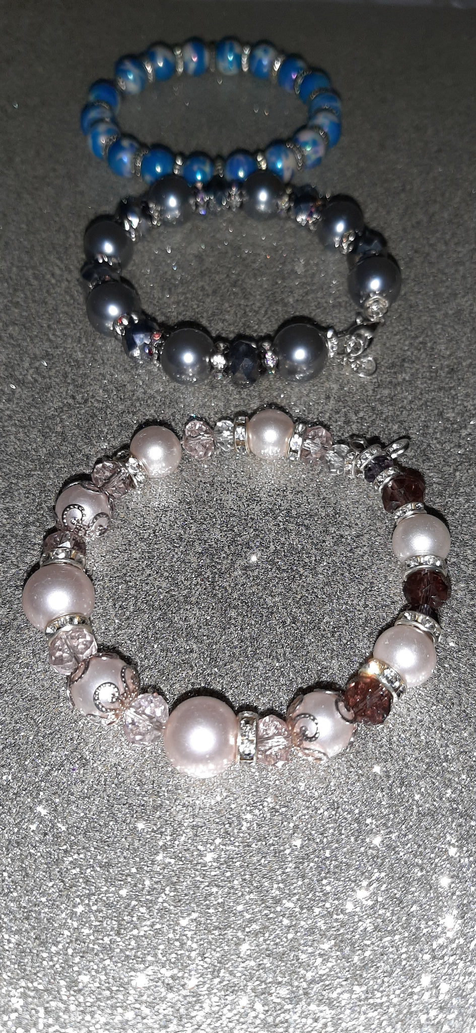These are hand crafted jeweled bracelets made with love. We do accept special requests.